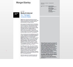 Matthew Robson fick under sin praktik på Morgan Stanley i uppdrag att skriva om sin och sina vänners medieanvändning – rapporten publicerades och har skapat stor uppmärksamhet. Den visar att tonåringar har tillgång till internet, hemma och i skolan, och använder sig mycket av sociala nätverkssajter som exempelvis Facebook, men däremot inte av mikrobloggen Twitter. De som har tillgång till internet i mobilen vill inte betala för det, utan surfar bara när de kan koppla upp på ett trådlöst, kostnadsfritt nätverk. De flesta ungdomar har kontantkort till mobilen istället för abonnemang och de använder inga betaltjänster förutom sms och vanliga telefonsamtal.